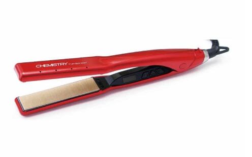 高温状態 (220℃) で水をかけても、通常のアイロンだと一瞬で蒸発しますが、ケミストリーは水滴がプレート上に留まり蒸発させません。